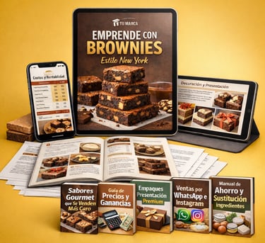 🎨 Con este libro conocerás los secretos para crear tu negocio de brownies estilo New York desde la comodidad de tu casa, ahorrándote entre 300 a 500 dólares que cuesta un curso presencial.